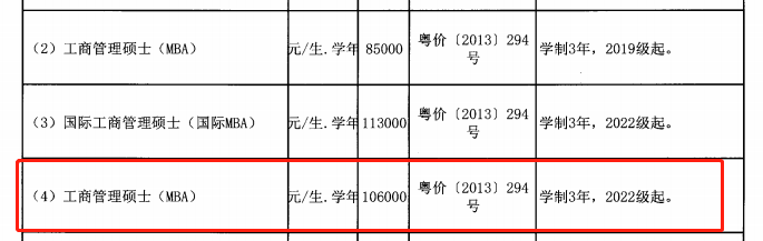 (2)广东工业大学MBA21级学费为10.8万元,22级学费为13.5万元,上涨了2.7万元。