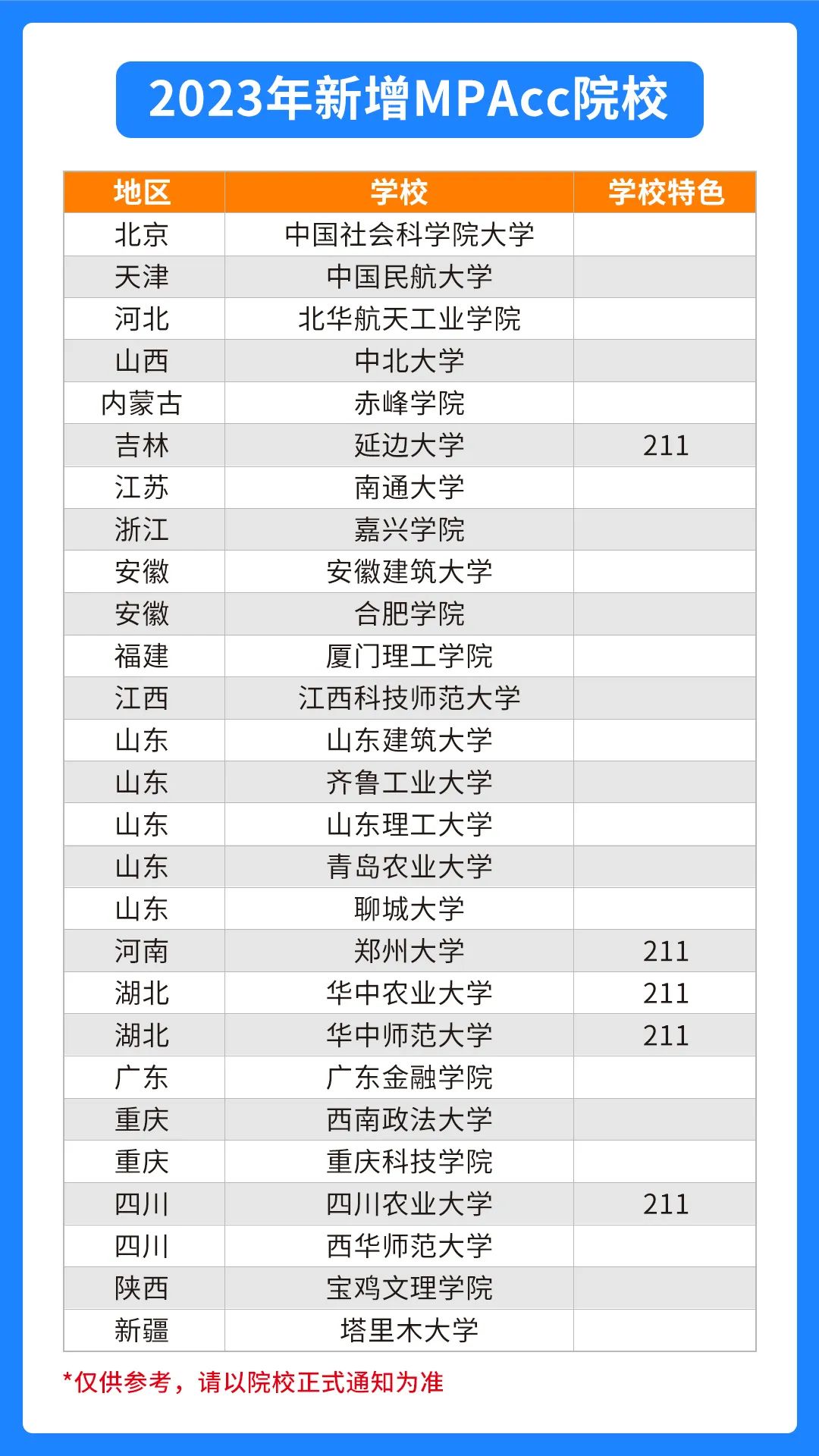 2023年27所新增MPAcc院校!